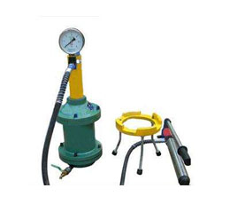 4、取得數(shù)據(jù)后,按逆時(shí)針?lè)较驍Q松回油閥,使系統(tǒng)卸壓,取下上蓋和試料筒,將試料筒安放在脫模器(隨機(jī)附件)上,蓋好上蓋,擰緊兩個(gè)螺母。在按順時(shí)針?lè)较驍Q緊回油閥,給千斤頂加壓至砼及活塞自動(dòng)脫落,拆下上蓋和試料筒,擰松回油閥,人工壓回千斤頂活塞,一次試驗(yàn)結(jié)束。