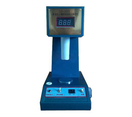 2、將儀器的電源插頭插好,打開電源開頭,預熱3分鐘。測量前用手輕輕托起錐體至限位處,輕按復位鍵,使顯示屏上的數字顯示為零